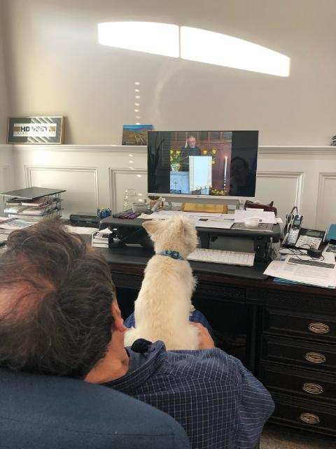At least Phoebe Allison would agree. According to Ron and Lynn, her human companions, Pastor Verkouw’s sermon last week kept Phoebe’s attention “the whole time.” As you can see. I hope you all are well this week! If you are still not receiving our Grace emails with links and directions to our online presence, OR if you need assistance in mastering the technology, please call Vicki at the Grace Office (717-397-2748) to update her or ask for help. As I write to you this Tues. morning, we arepreparing for Judy Sweigart’s graveside service. We may post some or all of it on video if possible. Please join me in giving thanks for her life and witness in Christ Jesus – Pastor Verkouw