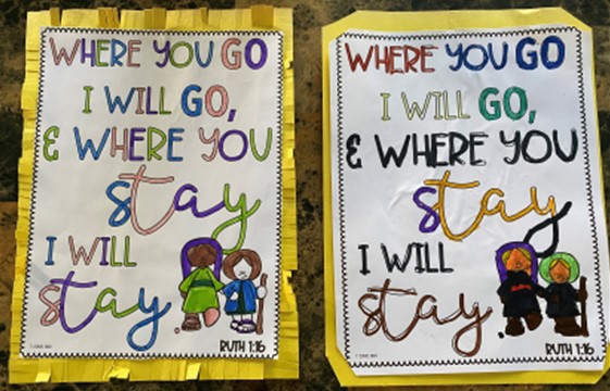 This past Sunday we studied Naomi and Ruth along with fellow characters in the bible story, Orpah and Boaz. My, wouldn’t the world be a beautiful place if all people were as selfless, loving, hard working and obedient as Ruth was to Naomi. If you would like to read the whole version of the loving words that Ruth said to Naomi go to Ruth 1:16.
