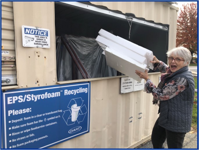 Grace member Sue Will recycling Styrofoam as part of our Creation Care at Grace.
