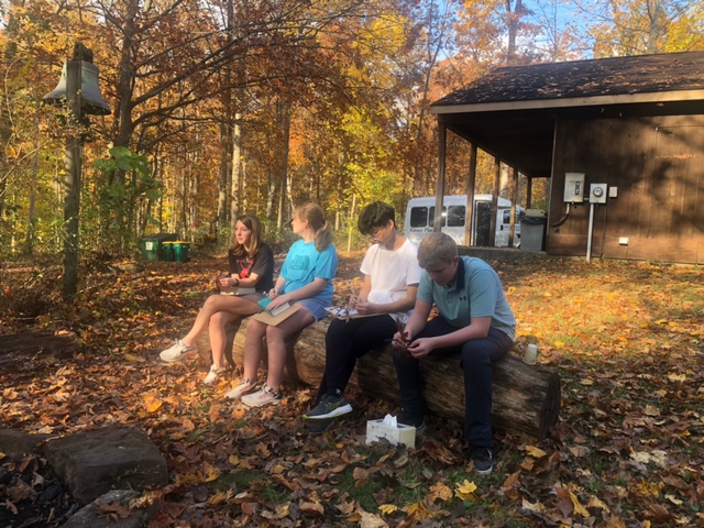 Students from Grace Lutheran attended an overnight retreat at Camp Kirchenwald October 28 and 29, 2023. Saturday afternoon was spent outside learning about creation and how to be good stewards of all that God has given us. Saturday evening included s’mores and Evening Prayer around the camp fire before enjoying popcorn, Mark Harman’s cheese fondue, and a showing of The Boy Who Harnessed the Wind. On Sunday students worked to prepare and participate in a worship service as we celebrated Reformation Sunday. There was a time of quiet reflection and prayer before the group headed to Camp Kirchenwald’s Fall Foliage Day. Thank you to Vicki Mumma, Meghan Kelly, and Philip Supeck for their preparation and leadership of this weekend in the woods.