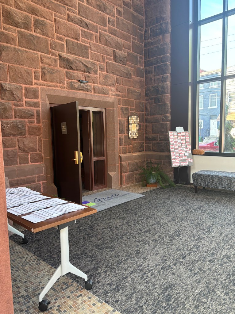 In many ways the solarium has been the answer to that question. You can fill out your name tag, pick up seasonal devotional material, and learn about upcoming events. This is great for everyone who comes in through the solarium…but it’s left our staff asking, what about the folks who come in through a different door?