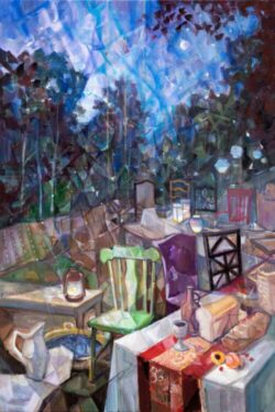 “I did this painting for the 2015 Mennonite World Conference in Harrisburg, PA. I especially thought of my father Gideon, who practiced lifelong, radical hospitality in ways that still surprise and humble me. At our table and inn, guests of all colors and creeds could be found from around the world: the rich and poor, the educated and the self-taught, people of faith and people of doubt. Creating this work reminded me of the best parts of my heritage, and that the practice of hospitality is a lifelong opening of heart, mind, and home.”
