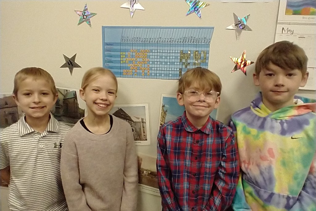These four are attendance stars in the 3rd-5th grade class, with 24 or more weeks attendance!